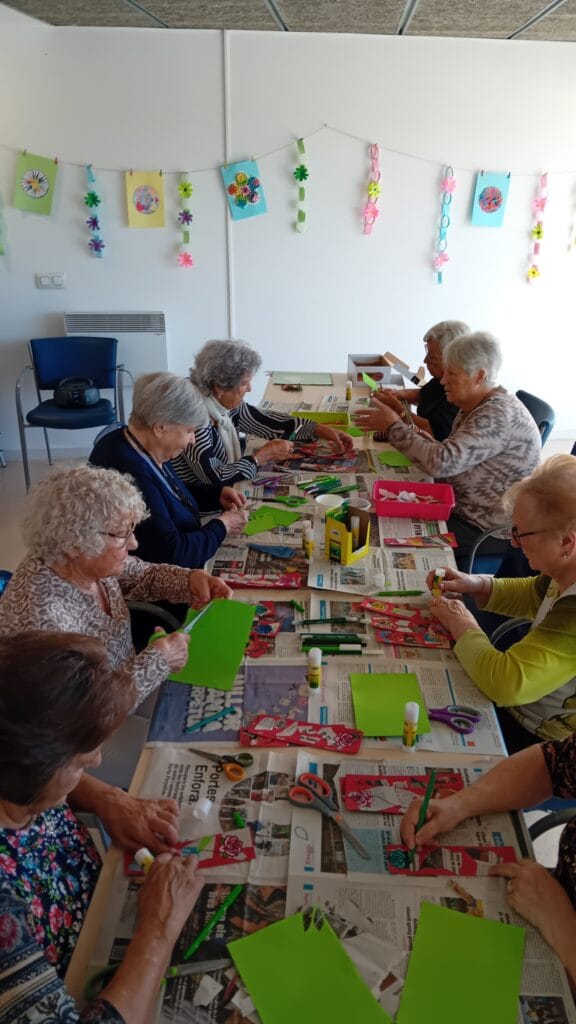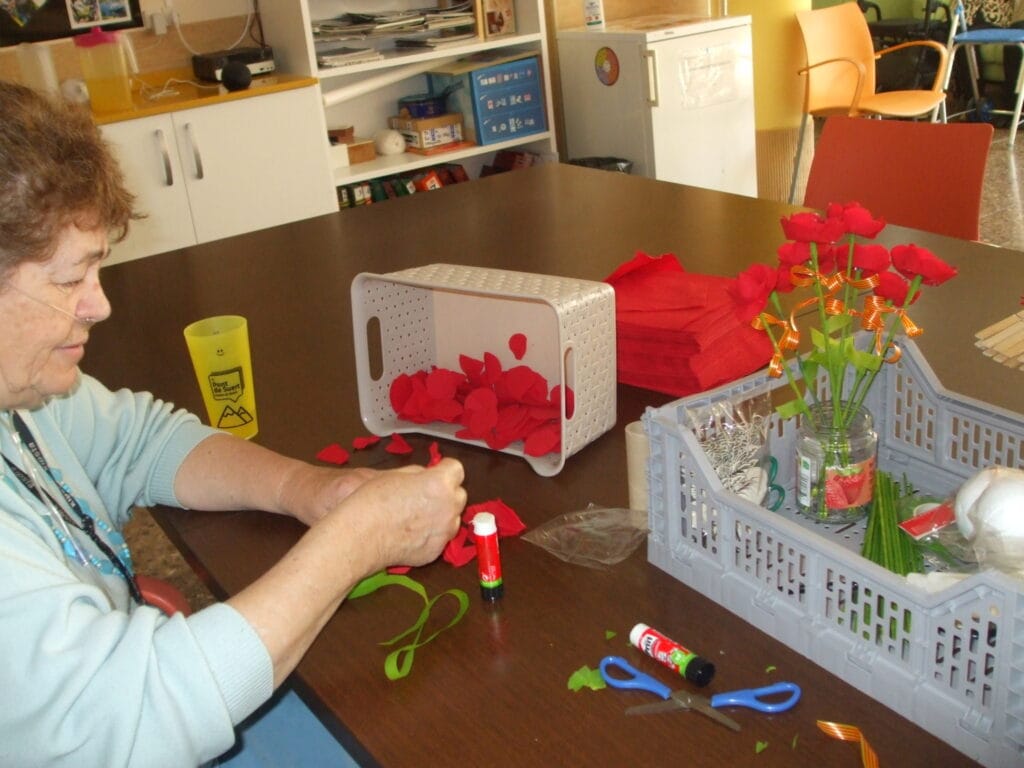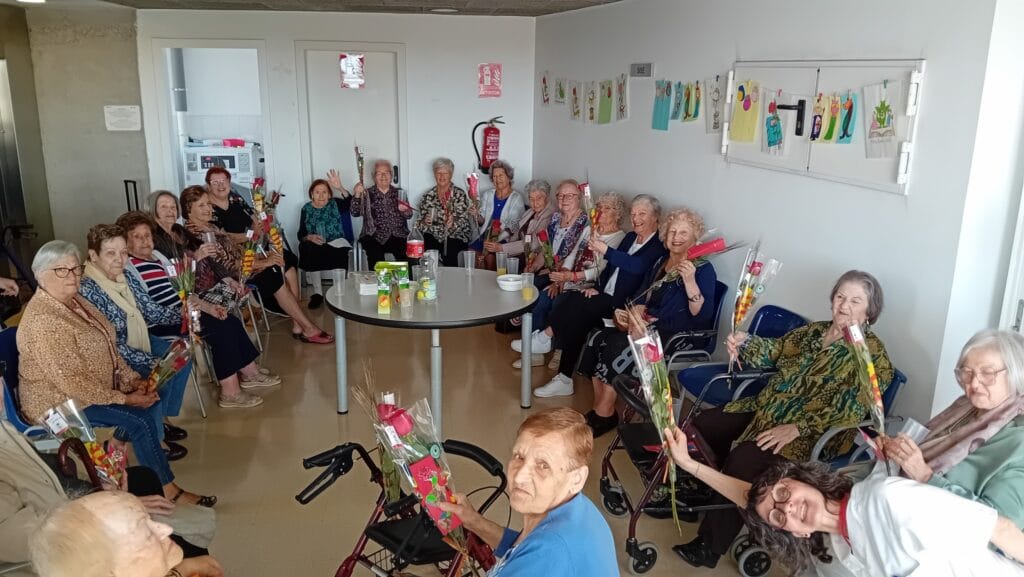La Diada també es va celebrar arreu del territori i de la xarxa que forma ABD. Als serveis per a persones grans, com la Residència i Centre de Dia Alta Ribagorça, al Pont de Suert, es van organitzar diverses activitats. Les persones usuàries van visitar les paradetes de llibres del poble acompanyades per l’equip professional, i van participar en tallers de roses de paper i en lectures de poemes. Als Habitatges per a Persones Grans de Joan Torras, la celebració també va ser molt participativa. Les persones usuàries van recitar poemes, van compartir un petit aperitiu i van rebre punts de llibre elaborats en tallers de manualitats. A més, van comptar amb la visita del regidor del districte de Sant Andreu, que va repartir roses entre les persones usuàries del servei, contribuint a fer encara més especial la jornada.