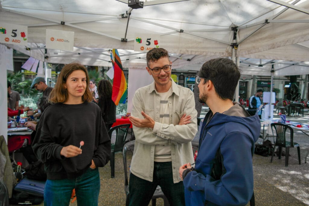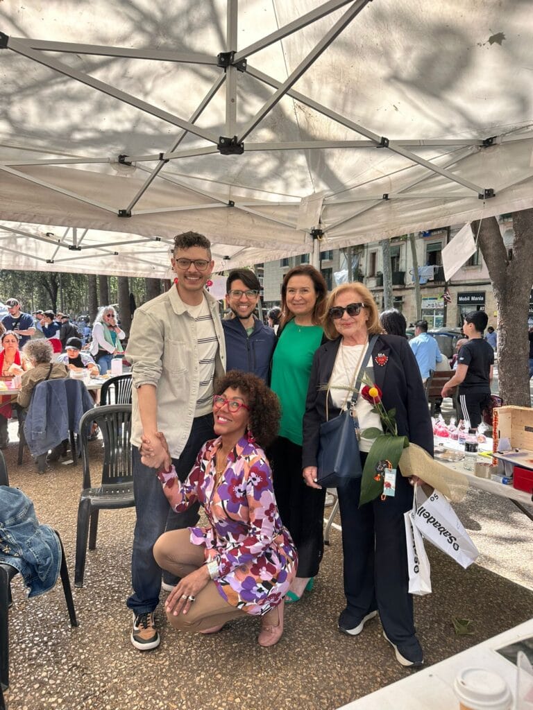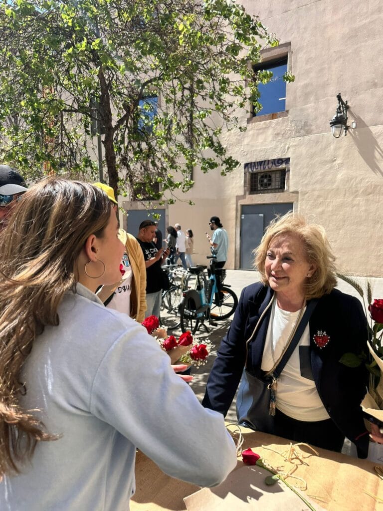 El mateix 23 d’abril, a Barcelona, vam estar presents al centre de la ciutat amb diferents paradetes, on gràcies a l’ajuda de l’equip professional i de les persones voluntàries vam poder dur a terme la iniciativa de les roses solidàries. Les ubicacions van incloure la Rambla del Raval, la plaça Vicenç Martorell i la plaça Ramon Berenguer el Gran, convertint-se en punts de trobada i espais de sensibilització sobre la tasca social de l’entitat. La gerent del Grup ABD, Àngels Guiteras, juntament amb la presidenta, Felisa Pérez, van fer un recorregut per totes les parades per acompanyar l’equip en aquesta diada tan especial.