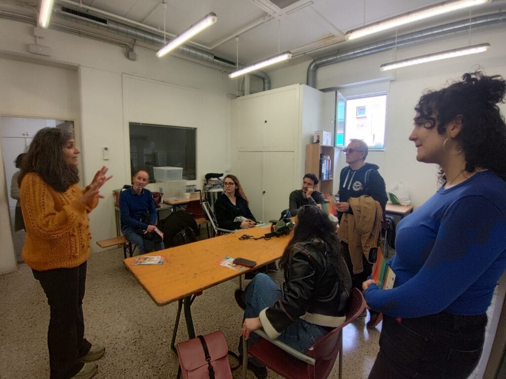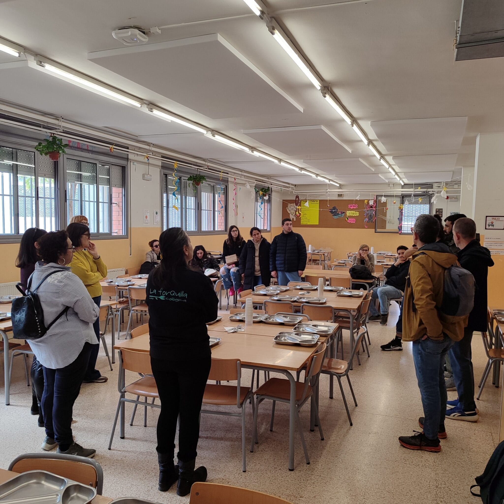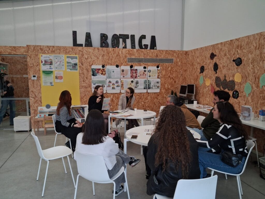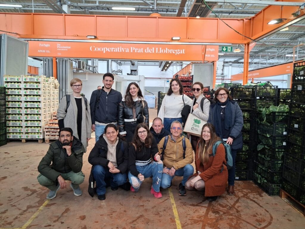 La segona i última jornada va començar amb una visita a la UET situada en la Cooperativa Agrícola del Prat del Llobregat a Mercabarna. Quatre participants del projecte van acompanyar al consorci i van explicar de primera mà les funcions que duen a terme en aquest espai: recollida i preparació de comandes, selecció dels productes i gestió del magatzem, entre altres. Els seus testimonis van permetre al grup entendre l’impacte real del projecte en les seves trajectòries personals i laborals. A continuació, el grup es va desplaçar a la UET situada a l’Escola Josep Tarradelles, on l’equip responsable del menjador escolar de la Forquilla Ecològica va presentar el seu projecte a l’escola i va explicar les activitats desenvolupades per la UET: preparació de les taules, tasques d’ajudant de cuina i suport al pati als monitors/se de menjador. També van participar en aquesta visita Montserrat Castells, Tècnica d’Acció Social de l’Ajuntament del Prat, i Eva Cabanillas, així com una representant de la comissió del menjador de l’Associació de Famílies de l’escola. Finalment, la visita al Prat va concloure en la Fundació Rubricatus, on la directora general, Imma Pérez, i María José Santiago, directora tècnica del Centre Ocupacional, van presentar la llarga trajectòria de treball de la fundació amb persones amb discapacitat intel·lectual i les seves diverses iniciatives d’inclusió social i laboral en el territori.