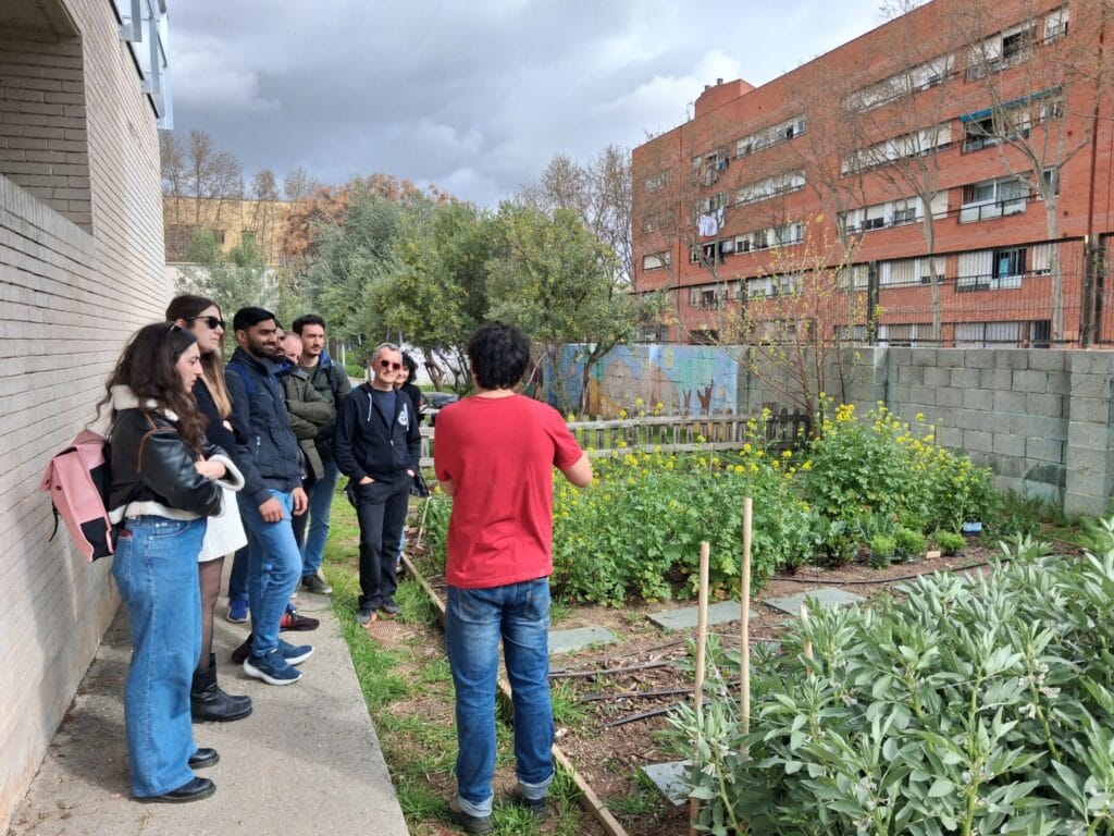 La visita va continuar a l’hort urbà dinamitzat per Contorno Urbano en una escola-institut del barri de Sant Cosme, on es va unir Jessica Navarro, tècnica de l’Ajuntament del Prat que treballa al barri. El dinamitzador de l’hort va explicar les activitats que realitza el grup de joves del projecte i tots els coneixements i habilitats que adquireixen i desenvolupen allí. A continuació, el grup es va traslladar al projecte comunitari Cuina de Barri, on el grup de joves de l’Educate for Independence participen en esdeveniments puntuals, com el 25N – dia de l’eliminació de la violència masclista-, com a espai de desenvolupament d’habilitats quotidianes i participació comunitària amb l’objectiu també de fomentar la seva visibilitat en la societat. A la tarda, les entitats sòcies i l’equip d’ABD van celebrar una reunió interna de gestió del projecte a La Botiga, en la qual es van revisar les activitats en curs i els pròxims passos. Per a tancar la jornada, el consorci va visitar la Fundació Espigoladors, i van tenir l’oportunitat de conèixer la seva activitat entorn de l’aprofitament alimentari i el seu model d’inclusió sociolaboral. El grup de l’Educate ha participat puntualment en les espigolades organitzades per la Fundació.