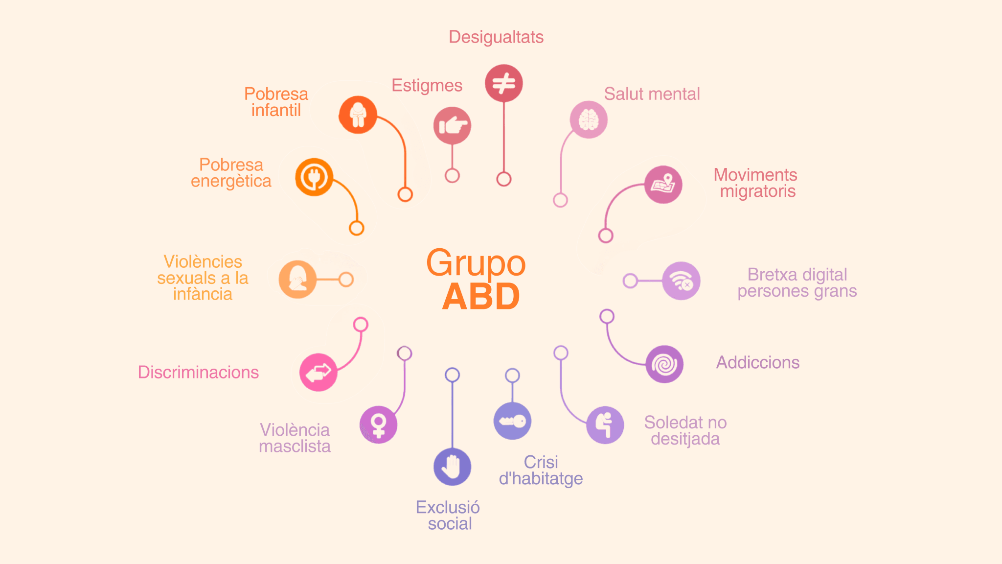 El Grup ABD està format per l’Associació Benestar i Desenvolupament, Fundació Acció, Benestar i Desenvolupament, Institut Genus, S.L., UTE CAS Prat i UTE Pobresa Energètica