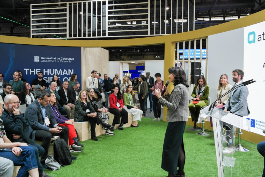 En este marco, el martes 5 de noviembre en la sección del «Barcelona Deep Tech Summit» se presentó ATENEA AtDom, una iniciativa pionera de inteligencia artificial generativa aplicada al Programa de Atención Domiciliaria Sanitaria. El acto, celebrado en el estand de la Generalitat de Catalunya (Hall 3), contó con la presentación institucional por parte de Maria Galindo, secretaria de Polítiques Digitals de la Generalitat de Catalunya, y con la participación de Àngels Guiteras, gerente del Grupo ABD; Albert Isern, CEO de Momentum Analytics; además de la Dra. Maria Glòria Torras, directora de Innovación del Consorci Sanitari de l’Alt Penedès i Garraf, y Sergi Figuerola, director de la Fundació i2CAT.