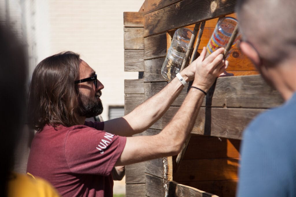 Por otra parte, se organizó una Jornada ambiental con la fundación Contorno Urbano, con motivo del Día internacional del reciclaje. Celebrada en el huerto comunitario de San Cosme, el objetivo era que los grupos que sostienen el espacio pudieran conocerse y construir una hoja de ruta común sobre las mejoras que se quieren implementar en el huerto durante este año. La idea es que en las próximas sesiones se pueda construir una estructura en el huerto y por eso, entre las actividades se hizo un taller de bioconstrucción con barro para mejorar la caseta-invernadero, una pintada de los muros del huerto, una siembra colectiva y juegos de educación ambiental y alimentación.