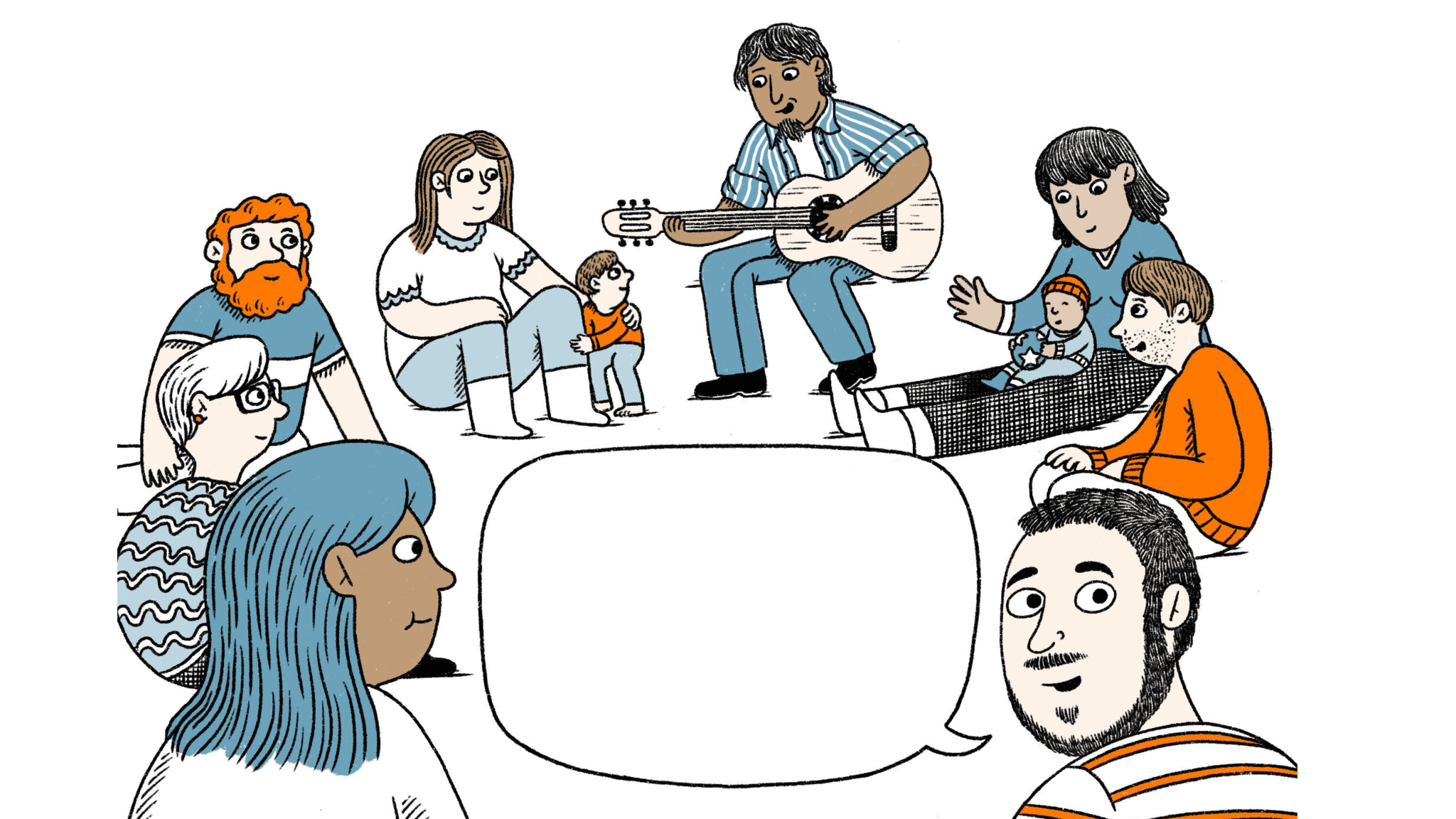 Al final de cada turno se realiza una asamblea, donde se cantan canciones y los padres y madres comparten inquietudes y experiencias sobre crianza y familia.