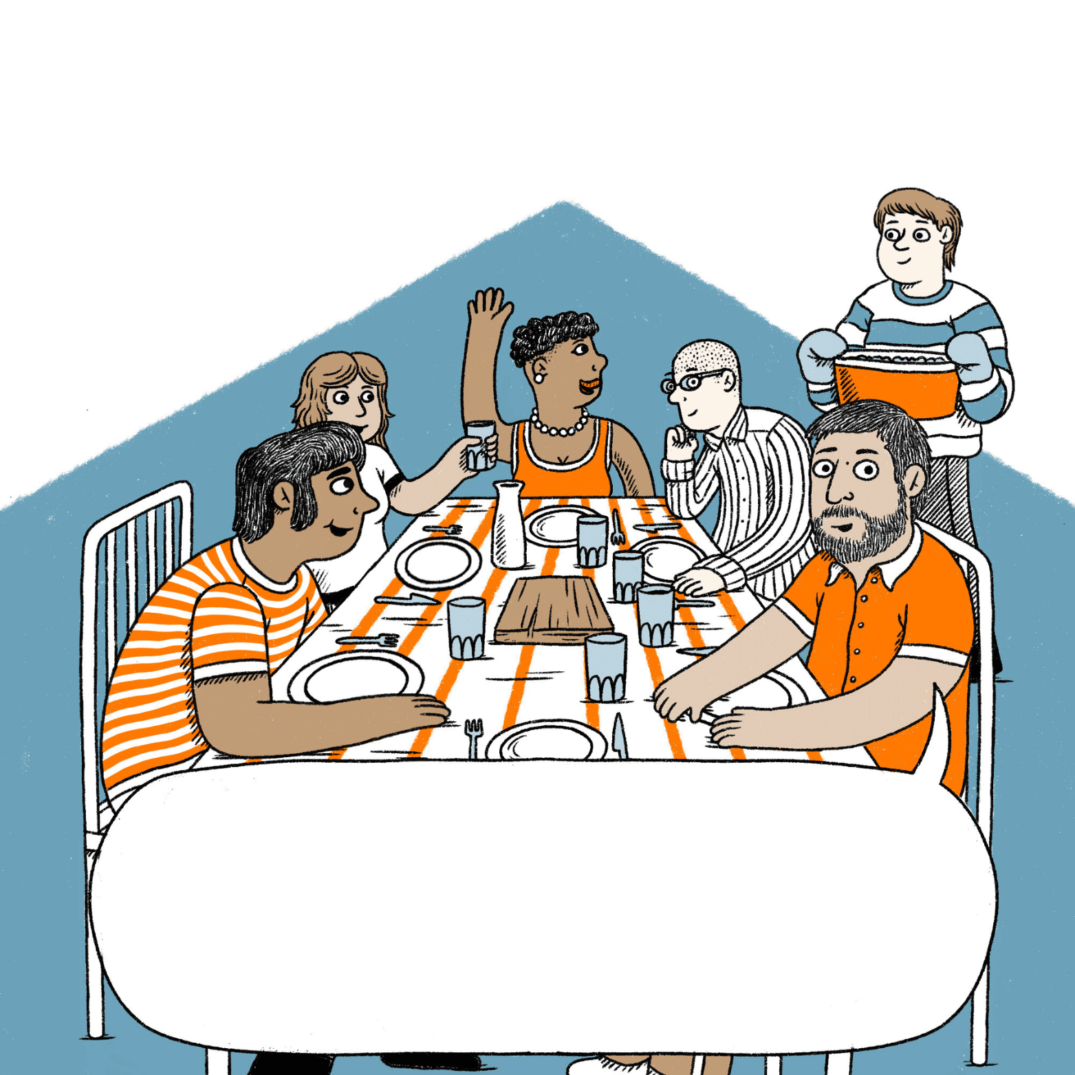 Una vez que la comida está lista, Joan comparte la mesa con el resto de las personas usuarias.