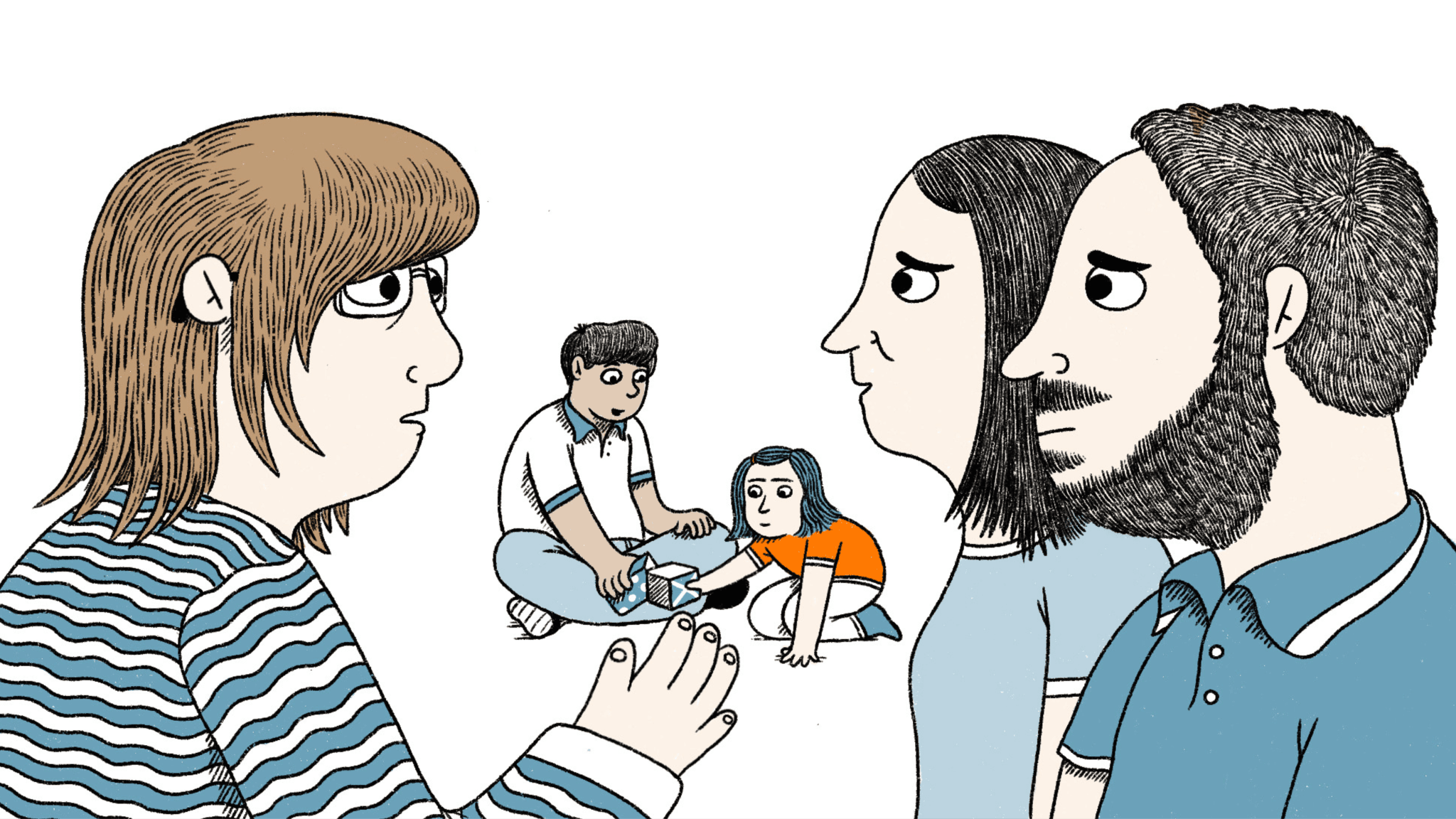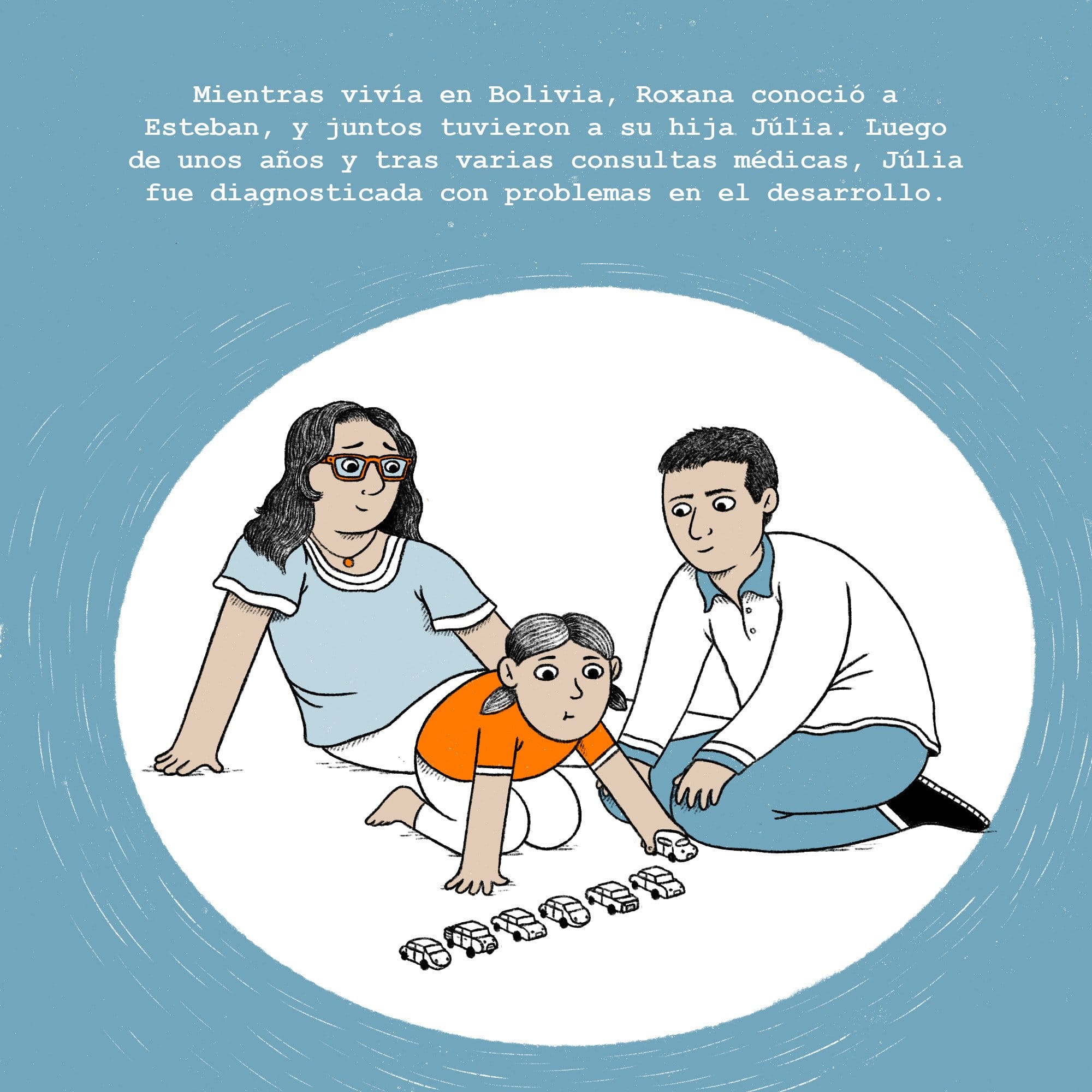Tras el fin de la cuarentena, Guillermo y Elizabeth descubren el Espacio Familiar, un recurso comunitario de juego compartido en familia, en el que las familias pueden intercambiar experiencias relacionadas con la crianza y cuidado de sus hijos/as, y consultar inquietudes y dudas sobre el desarrollo infantil y la crianza al equipo de profesionales que les acompaña.