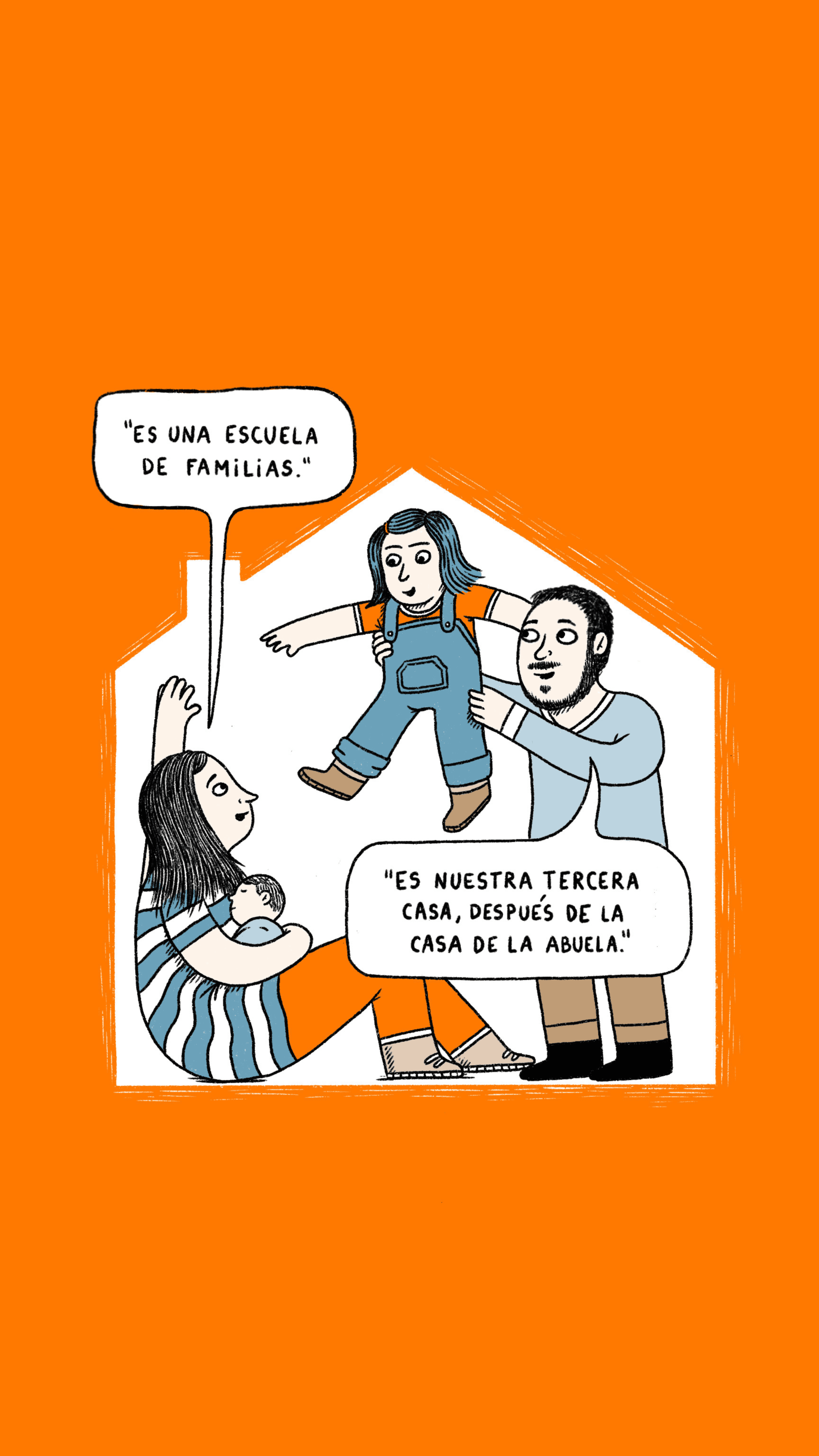 Tras el fin de la cuarentena, Guillermo y Elizabeth descubren el Espacio Familiar, un recurso comunitario de juego compartido en familia, en el que las familias pueden intercambiar experiencias relacionadas con la crianza y cuidado de sus hijos/as, y consultar inquietudes y dudas sobre el desarrollo infantil y la crianza al equipo de profesionales que les acompaña.